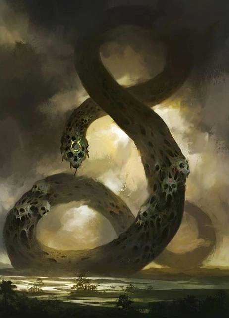 Впитав в себя две тысячи тел зомби, хтонь, наконец, насытилась и приобрела форму крайне уродливой змеи. Всё её тело покрыли крупные, явно не человеческие черепа, а на голове появилось подобие золотистой диадемы в форме буквы «U».