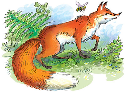 Полетела дальше и увидала Лисицу. Эх и хвост у Лисицы! Пышный да рыжий, красивый-красивый!