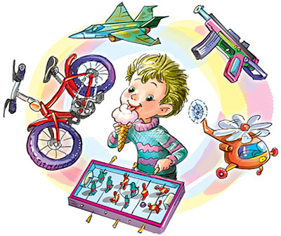 К концу учебного года я просил отца купить мне двухколёсный велосипед, пистолет-пулемёт на батарейках, самолёт на батарейках, летающий вертолёт и настольный хоккей.