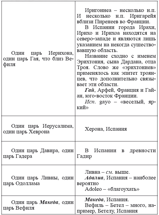 Далее описываются многочисленные передвижения, в географии которых довольно сложно разобраться, и которые мы опустим, приведем лишь идентичные или наиболее сходные библейским названия Европы.