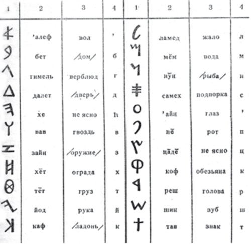 – в «финикийском» и далее «иврите» присутствовали гласные;