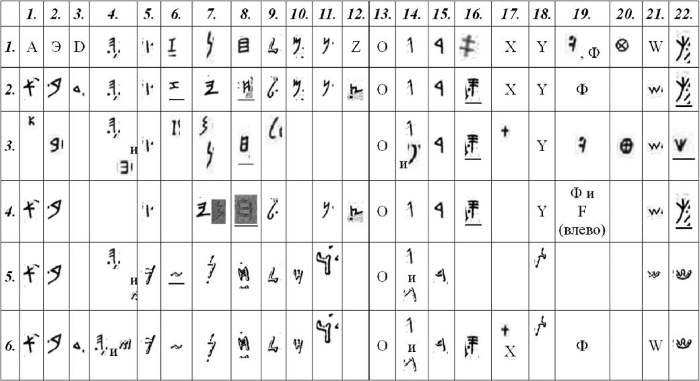 При этом в обычно приводимом финикийском алфавите приводятся не все буквы, используемые в текстах. Давайте посмотрим, какие буквы использовались, и сравним их с этрусским алфавитом.