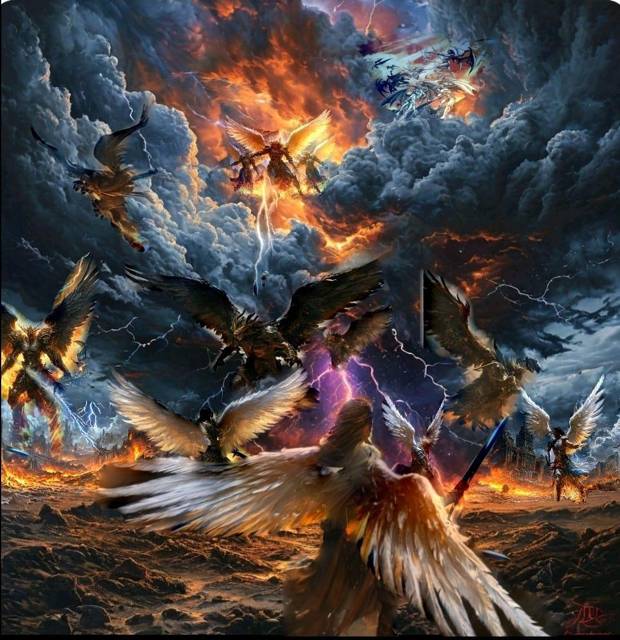 Когда мы дошли до конца тюрьмы, увидели на стене картину сражения. Сначала мне показалось, что здесь запечатлена война ада и рая. Демонов и ангелов. Но присмотревшись я понял, что в роли демонов выступают крылозавры. А в роли ангелов те, кто нашел здесь своё последнее пристанище. И если я правильно понял, это были те самые нефелины, о которых я так много слышал, но в первый раз увидел.