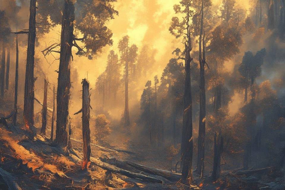 Мы отправились к нетронутым деревьям. До этого остались лишь выжженные стволы, за которыми было уже не спрятаться. И лёгкая дымка, исходящая от не остывших поленьев и земли.