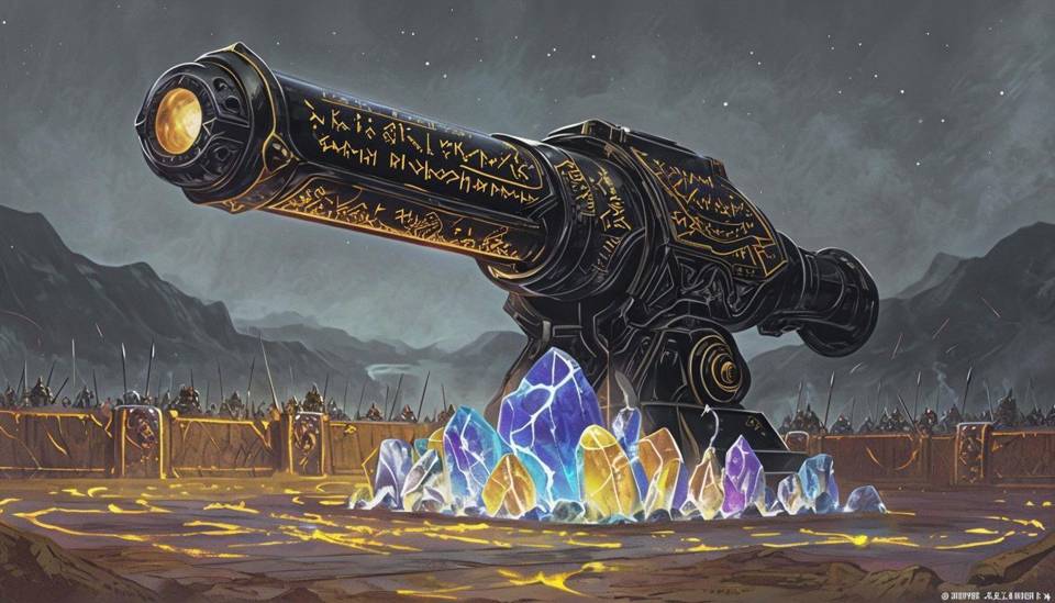 Когда шум на плацу немного стих, Эш и Люмьер подошли ближе к пушке. Массивное орудие, покрытое гравировками и рунами, уже выглядело внушительно. Оно слегка вибрировало, магические кристаллы внутри него вспыхивали слабым светом, словно прислушивались к узлу.