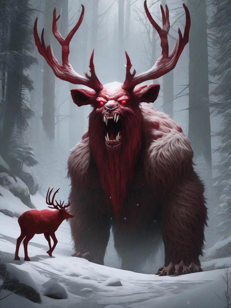 Демонический Йети, по натуре, одиночный хищник. Высотой около 25 метров (без рогов), длину – около 60 метров, с мощными конечностями, голова больше напоминает что-то среднее между человеком, оленем и демоном, также стоит отметить бело-красную густую шерсть.
