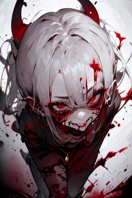 — Ну привет… — томно выдала мне ещё одна… Кхм, пусть мягко будет «демоница». С виду молодая невысокая девушка, но бледная как сама смерть, мало того, почти вся она была в алой крови. Та стекала с неё подобно поту и заменяла даже слюну во рту. Кровь буквально витала вокруг неё, словно позабыв о гравитации.