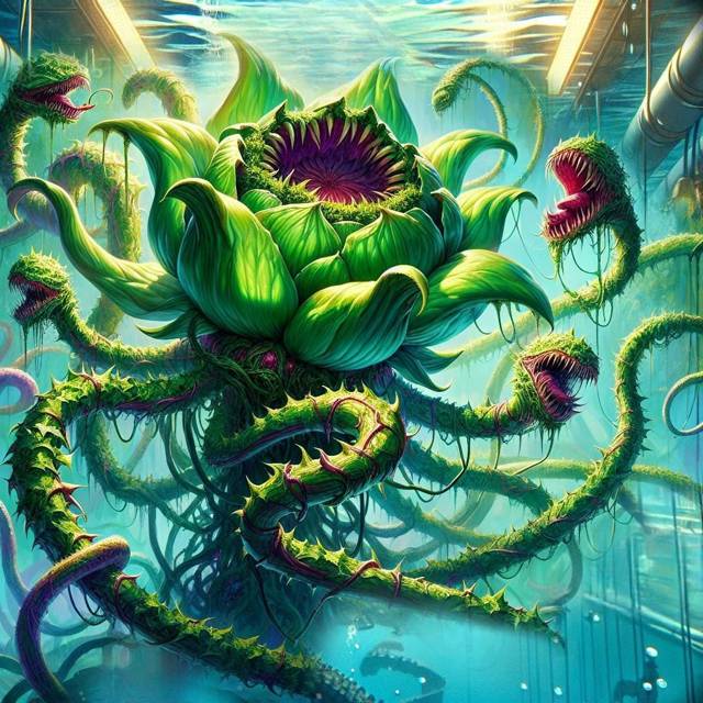 Сначала я заметил только движение в темной воде. Нечто огромное ворвалось в затопленный коридор со стороны лестницы. Мигом позже понял: это чудовищное растение! Лианы двигались синхронно, толкая громадный бутон вперед. Питомец Сэши казался спрутом, гигантским осьминогом.