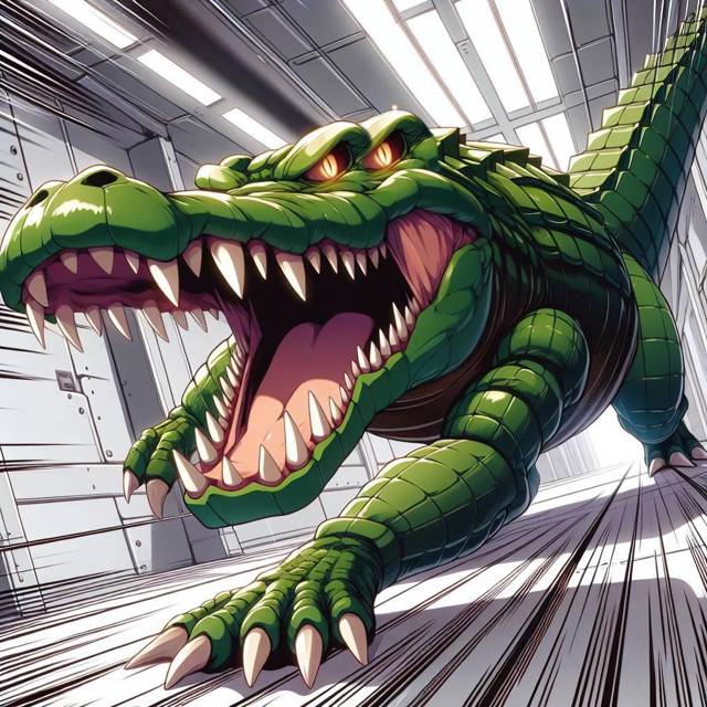 Из-за поворота почти галопом выскочил голодный аллигот.