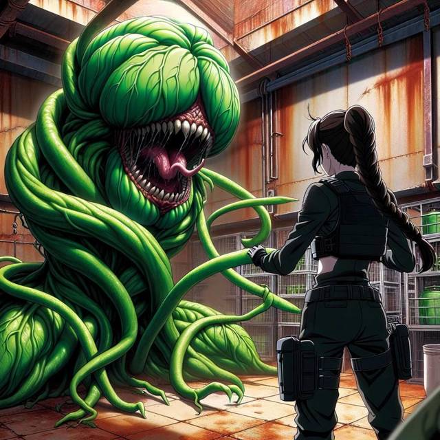 Девушка пожала плечами и продолжила нахваливать монстра. Дегустация пошла ему на пользу, он все больше входил во вкус. Сейчас растение уже целиком забралось в навоз, будто само себя высадило на грядку. Лианы с блаженным видом окутали кучу, а главный бутон закрыл клыкастую пасть.