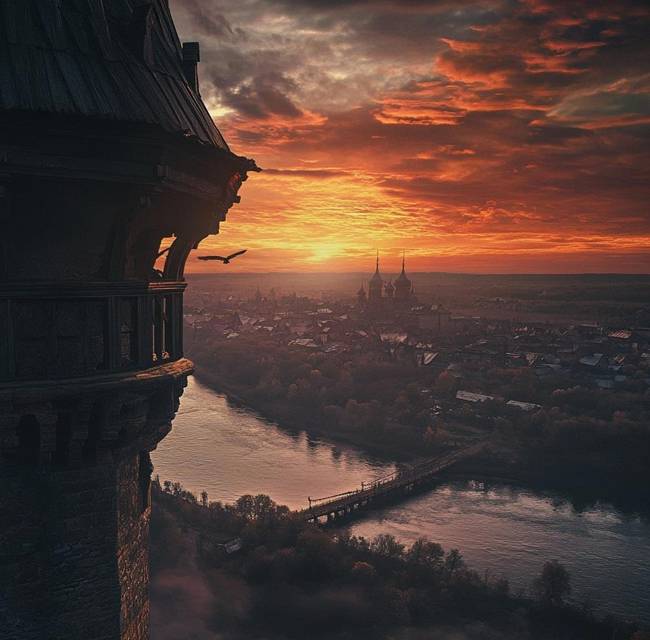 Ветер рванул сильнее, принося с собой запах сырой земли. Я смотрел, как воины внизу натягивают шатры, выстраивают ряды копий, готовят лестницы. Их тысячи — больше, чем я ожидал. Черные вороны на знаменах казались живыми, будто готовились клевать мою дружину. Добрыня стоял справа от меня, щурясь против ветра, его рука лежала на мече.