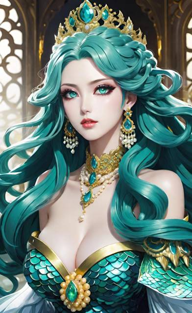 Копья плавно разъехались в стороны и, после недолгой заминки, тяжелые каменные двери медленно открылись, пропуская нас в просторный тронный зал. Помещение одновременно поражало своей неземной красотой и пробирающим до костей холодом. Пол был вымощен зеркальным сине-зеленым мрамором с серебристыми прожилками. Стены казались живым воплощением искусства из рельефного узора, жемчуга, серебра и переливов воды, что с тихим журчанием струилась по неровной поверхности. Потолок заслуживал отдельного внимания. Он был идеально плоским и, если бы не вода, которая не лилась внутрь и магические блики, что время от времени пробегали по нему, я бы и вовсе подумала, будто его нет. Просто огромная дыра в открытое море, через которую каким-то неведомым образом просачивались далекие солнечные лучи и оседали в зале невесомой, тонкой пеленой. Не знаю, каково было местным, но на меня нависшая над нами толща воды, оказывала просто колоссальный эффект. С первых секунд, как мы вошли в помещение, меня не покидало ощущение просто дичайшего давления. Тело было напряжено до такой степени, что у меня постепенно начали дрожать руки, а где-то в груди все сдавливало от первобытного страха. В общем, инстинкт самосохранения работал на полную катушку! Хотелось убедить себя в том, что мне ничего не угрожает, но я прекрасно понимала, что это далеко не так. Угроза все еще маячила надо мной, как коса мрачного жреца Смерти. М-да, богатый у меня, однако выбор — жертва морской пучины или палача? Ох, надеюсь, оба варианта обойдут мою тушку стороной… Нервно сглотнув, с трудом оторвала взгляд от потолка и перевела его на роскошный трон в форме раскрытой морской раковины, жемчужиной в которой являлась необыкновенной красоты и величия женщина. Идеальную фигуру подчеркивало длинное платье из белого шелка и зеленоватых чешуек. Бледность кожи оттеняли массивные украшения из жемчуга и золота, а на прекрасном лице с тонкими чертами, обрамленном длинными волнистыми волосами цвета морской волны, особенно выделялись невероятно выразительные аквамариновые глаза. Уверена, за один лишь только миг рядом с такой нимфой, любой мужик не задумываясь бы продал душу дьяволу. Я не мужчина, но даже меня она очаровала и будто пленила своей невероятной красотой! Мисс Мира и даже Вселенной из нашего мира, просто нервно курила в сторонке по сравнению с ней. Вау!