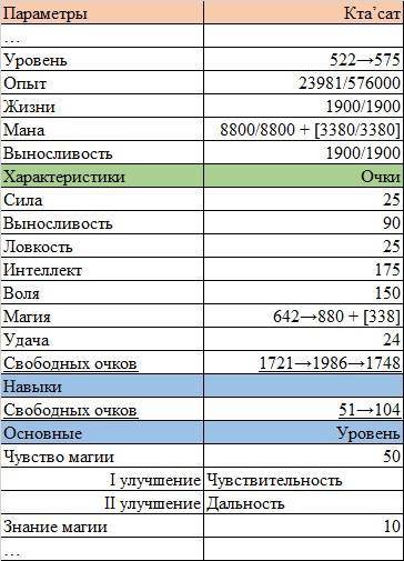 Пятьдесят три уровня за четыре дня и ещё два, но там я нежити убивал мало. В характеристике «Магия» теперь очков столько, что «мана» восполняется по семь пунктов в минуту. Свободных «очков навыков» спокойно хватит на прокачку «Знания магии» до первого улучшения, а свободных «очков характеристик» вообще накопилось столько, что два месяца распределять буду. Но всё это лишь крохи.