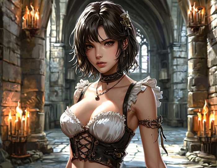 Вопреки ожиданиям перед нами появилась не сама хозяйка замка, а одна из её прислужниц. Правда, выглядела она довольно паршиво.