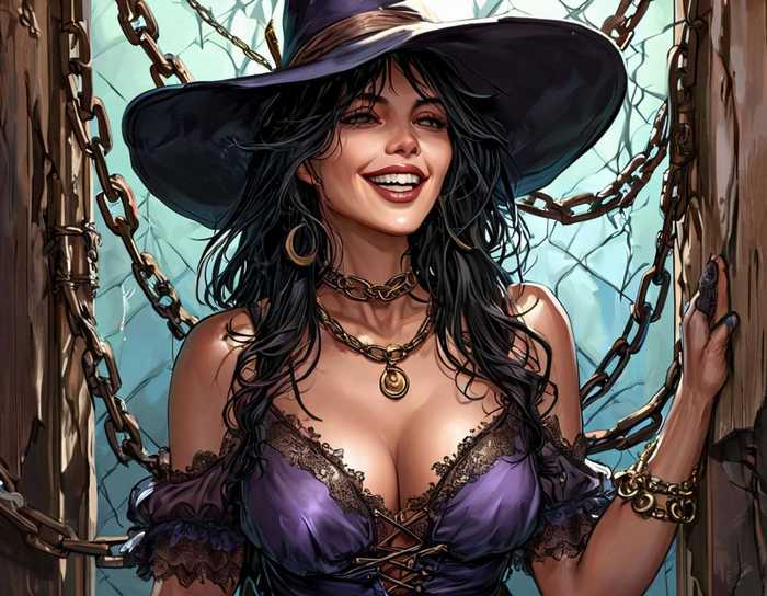 И вот, когда я закончил (ну да, я тоже наслаждался этим баловством и довёл всё до конца), вышел из красотки (всё же нельзя было отрицать её красоты, пусть она создана и с помощью колдовства и тёмной магии) и отступил, пристально глядя на обнажённую и прикованную ведьму.