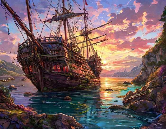 Собственно, этого было вполне достаточно, чтобы мы сорвались с места и ринулись к какому-то там полузатопленному кораблю. По пути фея рассказала нам всё остальное. И должен признать, выглядело это странно, хотя вполне логично. Карлос лишь жук и может спокойно лазить по полусгнившим досками, которые вот-вот развалятся. Но почему без ничего? Отчего или от кого он прячется в таком мерзком месте? Ведь по рассказу Стеллу, он ничего не воровал и не таскал в своё логово.