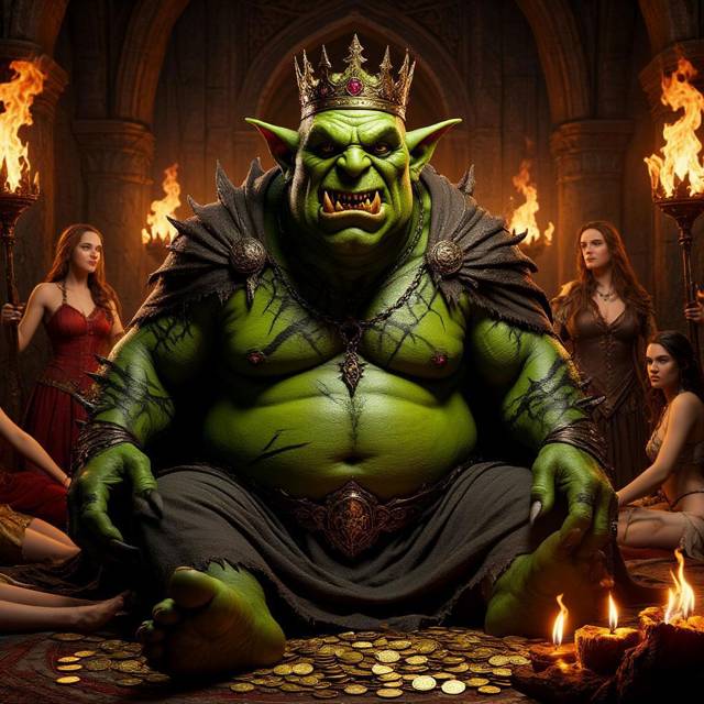 Будто мне не похуй, — подумал Халтос и вошел внутрь сокровищницы через неприметную дверь, затем преодолел небольшое расстояние по коридору, завернул за угол, открыл дверь и наконец увидел короля, сидящего на полу перед кучкой золота и окружённого женщинами.