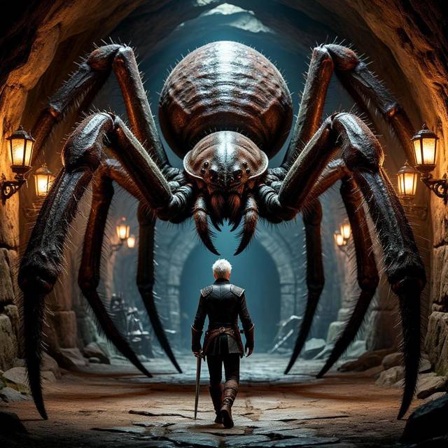 Паук ожил, будто почувствовал мое присутствие, и медленно развернулся, перебирая лапами. Я машинально обнажил меч, но тут же опустил его и замер. Паук тоже остановился, развернувшись, и уставился на меня своими огромными глазами.