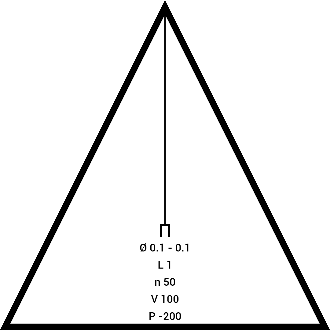 Я нарисовал основу, ключ фразу, теперь данные. Диаметр одна сотая – одна сотая. Сделаем плоскость. Длина – единица, скорость – сто. Высота – пятьдесят талей. Плотность… Сколько? Пусть будет минус двести.