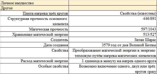 В рабочей зоне левая стена в стеллажах, правая пока что пуста, у передней стены массивный деревянный стол. На нём — толстая деревянная дощечка с тремя металлическими кругами, одни в другом, и торчащими короткими подставками для посуды. Лог.