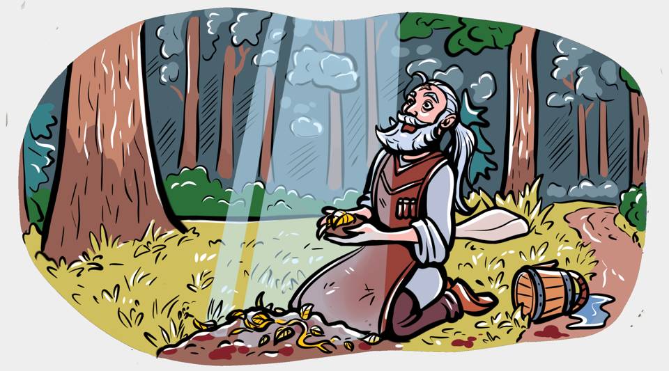 Аккуратно переложив драгоценный листик в одну ладонь, старик начал ощупывать свою шею и вскоре достал из-под воротника деревянный кулон. После недолгой паузы он сжал дощечку и дёрнул её. От резкого действия шнурок лопнул, и старик вытянул руку со сжатым в кулаке талисманом: