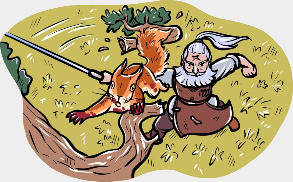 Несмотря на то, что габариты монстра превышали человеческие чуть ли ни в два раза, старик почему-то встал напротив разъярённого зверя и выпрямил спину. Даже костыль в его руках совсем не дрожал, словно тот вообще не боялся.
