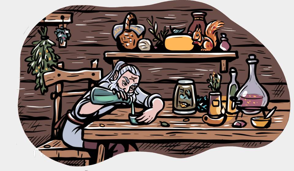 — Первое, чему научила меня учитель, так это готовить горячительное зелье. Да-а-а, выпивать она любила…