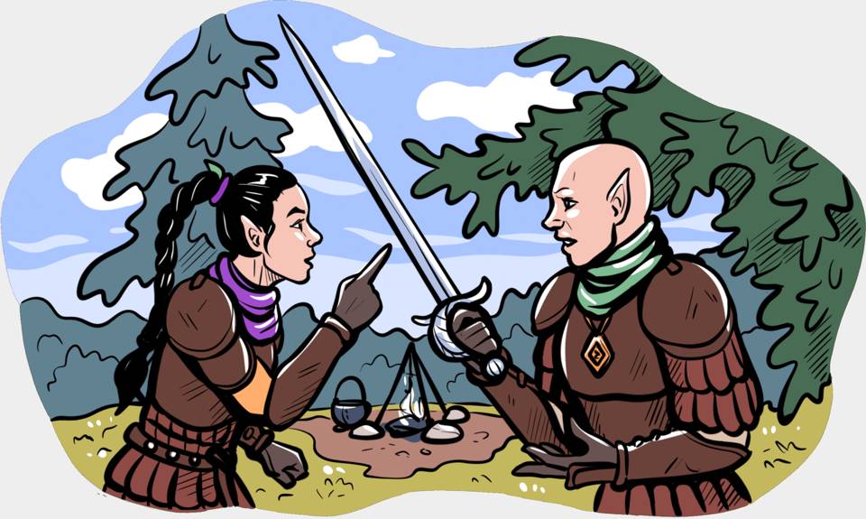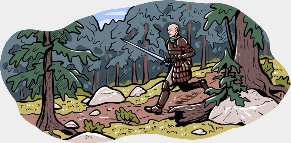 Нащупав рапиру, поднялся на ноги. Вспомнил, что так и не починил застёжку на поясе. Понимая, что нет времени на тщательные сборы, крепко сжал рукоять и обнажил оружие. Деревянные ножны отправились на всё ещё тёплый спальник.
