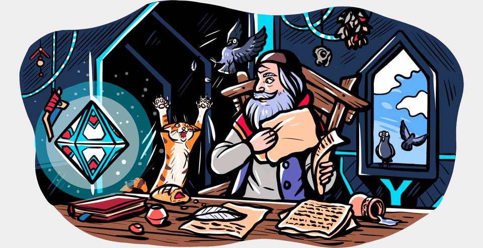 Обычно, когда я нервничаю или переживаю, мне помогает успокоиться кинжал для метания. На его рукоятке расположено специальное кольцо, в которое можно вставить палец, чтобы раскрутить нож для более точного броска. Вот это самое вращение на пальце обычно и помогает расслабиться. Обычно — да, но сейчас — нет. Я с трудом сдерживаюсь, чтоб не метнуть кинжал в спину мелкого мага!