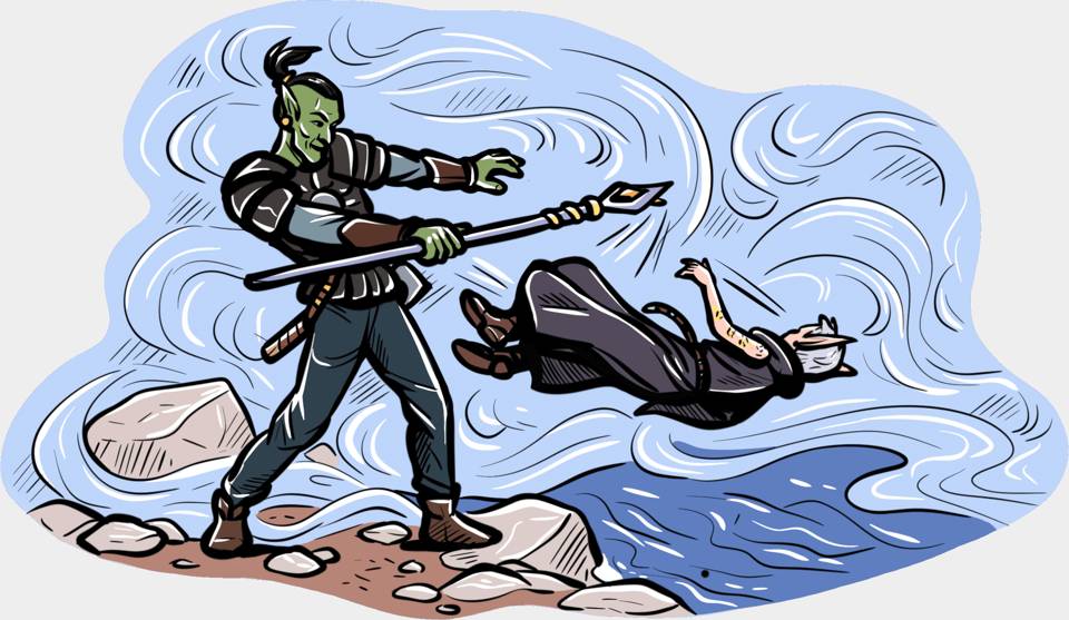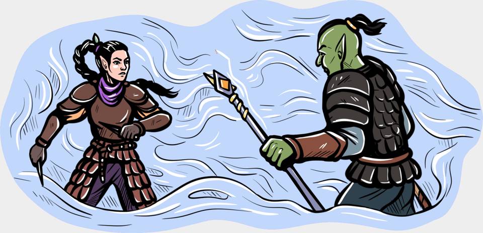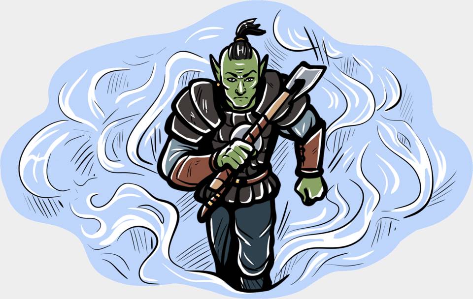 Из тумана показался зелёный великан, и я тут же метнула в него кинжал. Клинок угодил орку в плечо, однако он даже не обратил на него внимание, бросился к Аймону и рывком вырвал посох из его рук.