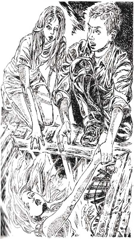 По какой-то таинственной случайности его луч был направлен не в сторону океана, а на лестницу. Часовщик успел спуститься на несколько ступенек, когда вспыхнул ослепительный свет, но Синди еще только шагнула к люку. И внезапный свет на какое-то время лишил ее зрения, как и остальных. И вместо того, чтобы шагнуть на ступеньку, она, споткнувшись, скользнула через край люка. Адам увидел слева от себя темное падающее пятно и услыхал крик. Не размышляя, он рванулся поймать ее.