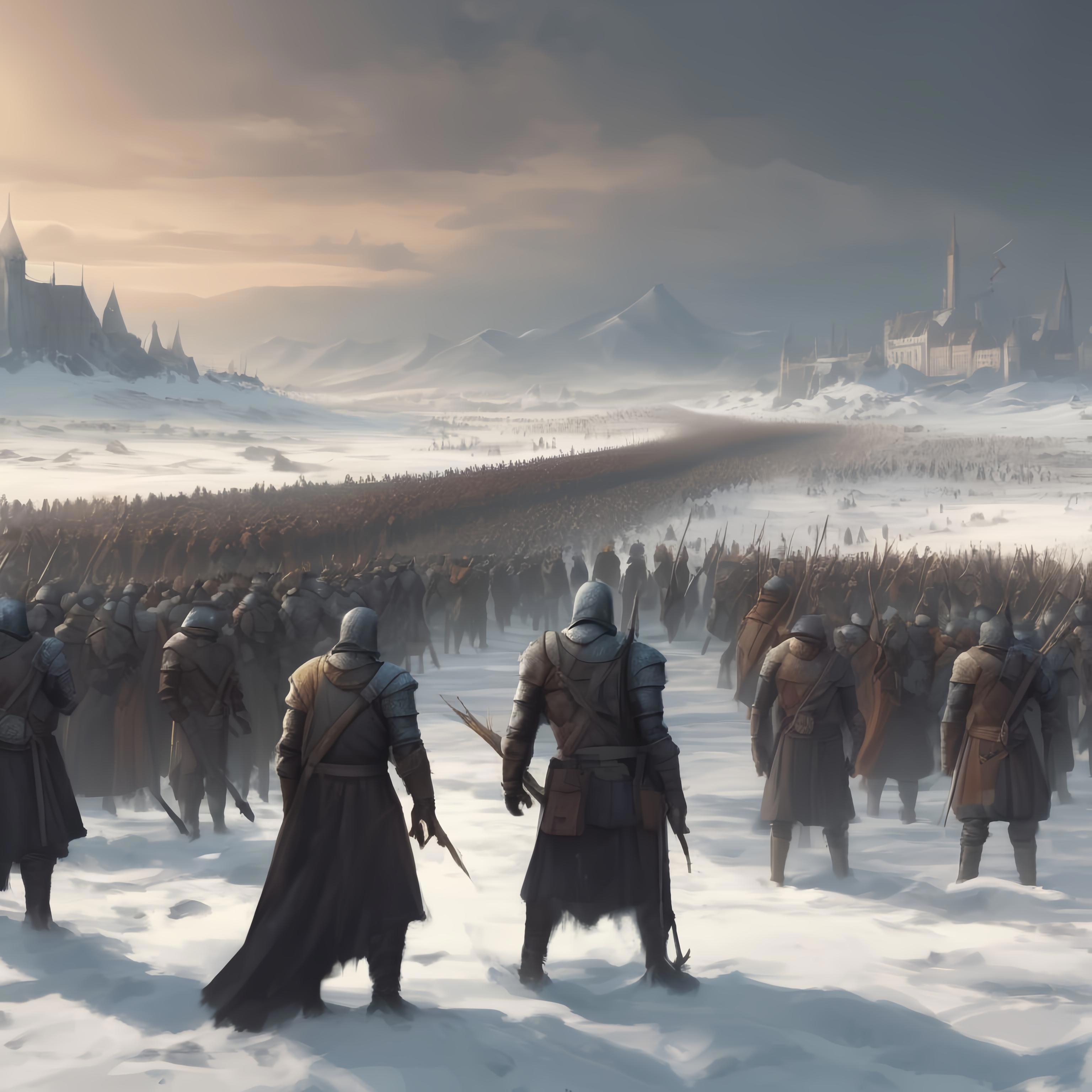 “Армия ” – пришло в голову мне слово. И на самом деле нас тут было целое войско. Все были закованы в броню, держали в руках оружие и напряжённо смотрели куда-то вперёд. Где-то в далеко нервно ржали лошади, скорее всего один из отрядов конницы. На ветру развевались знамёна, некоторые из которых были мне знакомы. Вот, к примеру, справа буквально в ста метрах от меня был лютоволк Старков, на пару с белым солнцем Карстарков, а слева водяной с трезубцем Мандерли.