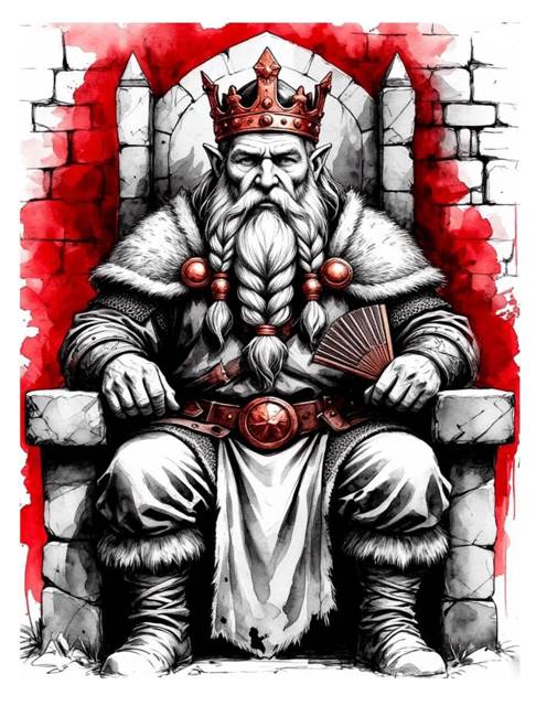 Он восседал на массивном каменном троне, больше похожем на грубо отёсанную глыбу, чем на произведение искусства, и тяжело дышал, обмахиваясь каким-то резным веером. Вокруг трона стояли несколько советников, такие же пожилые, но более подтянутые гномы с озабоченными лицами и десяток стражников в ярко начищенных, но явно не новых доспехах.
