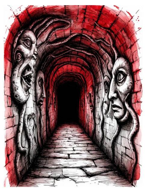 Стены туннелей здесь были другими. Если верхние ярусы Алатора, хоть и древние, носили явные следы гномьей работы — аккуратная кладка, выверенные арки, рунические символы, то здесь всё было иначе. Камень был обработан странно, будто магией, а не инструментом и в то же время с какой-то циклопической мощью. Проходы были шире, потолки выше, словно рассчитанные на существ, гораздо более крупных, чем гномы. Местами виднелись странные, полустёртые барельефы, изображавшие нечто, не поддающееся однозначному определению, какие-то сплетения щупалец, многоглазые лики, геометрические узоры, от которых рябило в глазах.