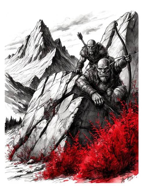 Первая атака была стремительной и яростной, как удар разъярённого быка. Десятка два орков, самых быстрых и безбашенных, вооружённых кривыми, зазубренными мечами и короткими метательными копьями, с диким рёвом бросились на нас из-за скального выступа, где они, очевидно, устроили засаду, рассчитывая на нашу беспечность.