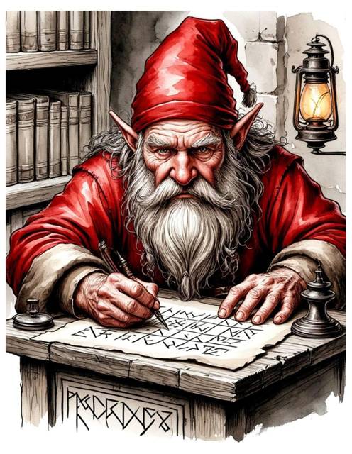 У гномов было упрощённое письмо в строчку и его я уже мог понимать, а было руноплетение, где имела значение как сама руна, так и её соотношение с другими, соседними и вместе они образовывали рисунок/чертёж, который имел сразу несколько значений и… Вот в переплетении я совершенно ничего не понимал.