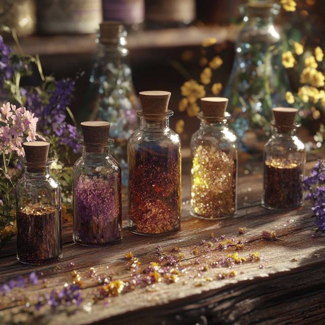 Воду налил из чайника, пошептал, мёда из плошки немного добавил и размешал деревянной ложечкой, со второго флакона капнул густое зелье.