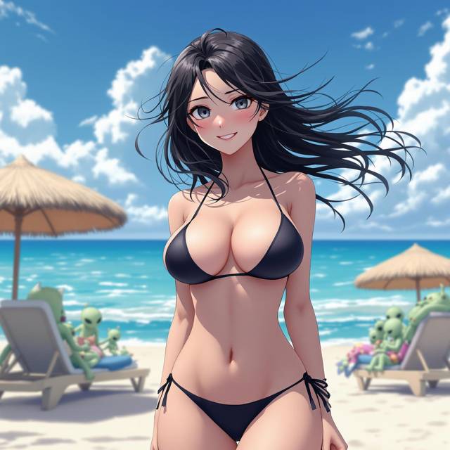 Роза в чёрном бикини с зелёными листочками выглядела как богиня плодородия — её лианы слегка шевелились на ветру, а глаза цвета луговой травы мягко светились. Она была воплощением природы — дикой, первозданной и загадочной.