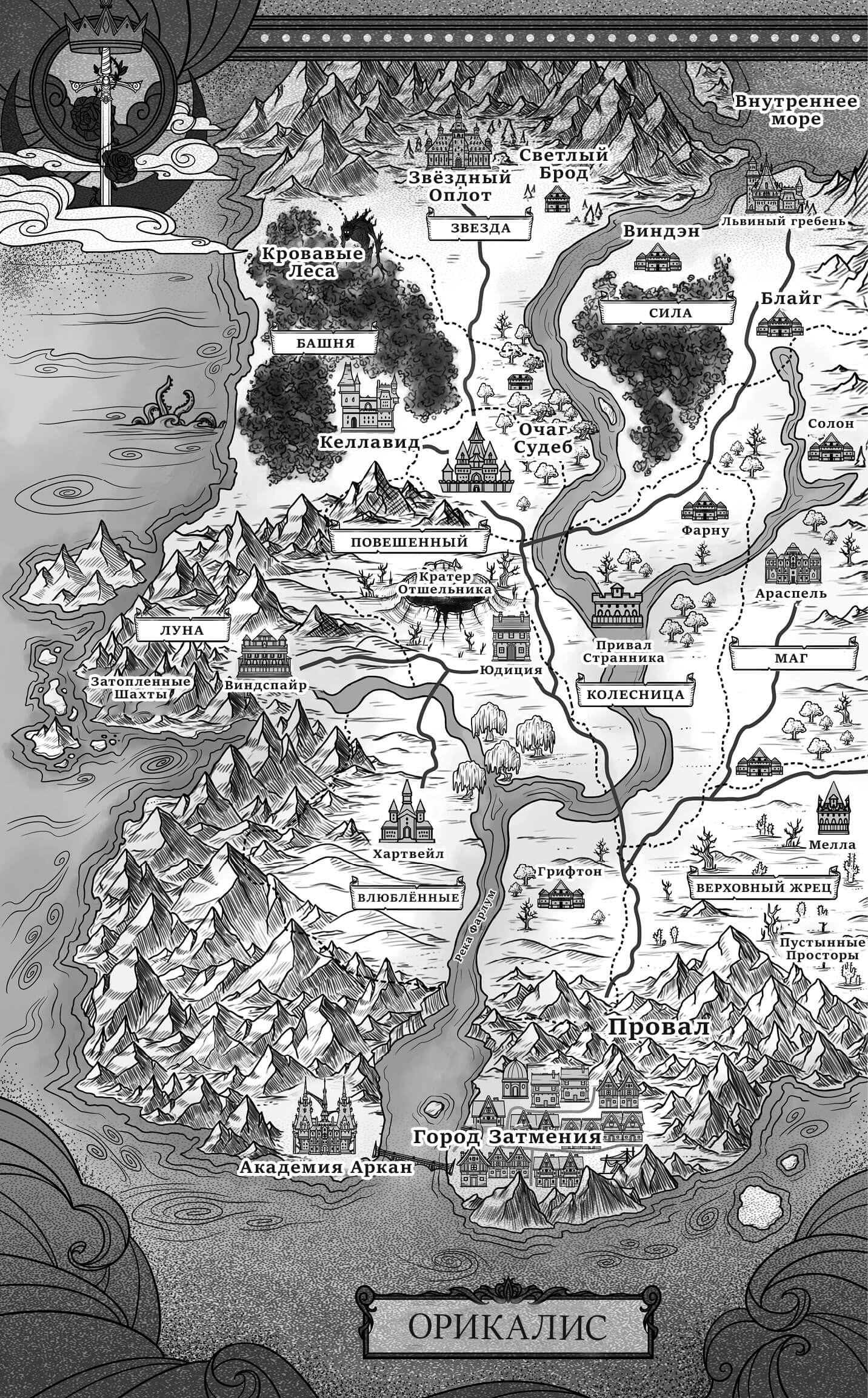 Символика не оставляет сомнений — Туз Мечей. Первая карта масти. Символ королевской семьи Орикалиса. По обе стороны двери стоят рыцари в серебряных латах. Не стража города и не охранники тюрьмы. Королевские рыцари. Стеллисы. Элитная гвардия — лучшие из лучших бойцов в королевстве, присягнувшие защите короны и исполнению её воли. Единственное, что, как говорят, может соперничать с их мастерством — это жестокость. Из шлемов, украшенных крошечными резными мечами у ушей, торчат пучки перьев: одни белоснежные, другие — чёрные, как воронье крыло.