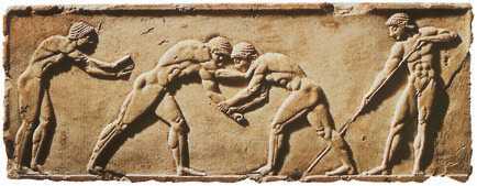 «Борцы». Барельеф с афинского Акрополя. Ок. 500 г. до н. э. Мрамор. Национальный музей. Афины