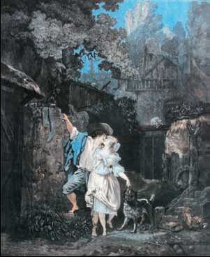 Л. Ф. Дебюкур. «Утреннее прощание». Цветная акватинта. 1787 г.