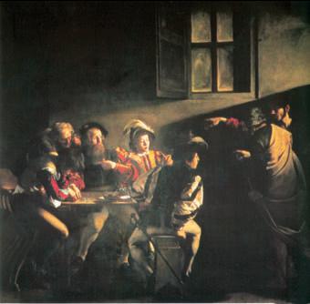 Выдающимся произведением Караваджо является цикл полотен, посвящённых св. Матфею, написанных для капеллы Контарелли в церкви Сан-Луиджи деи Франчези в Риме (1599-1602). В «Призвании апостола Матфея» событие Священной истории происходит в тёмном полуподвальном помещении. Поток света, льющегося из окна вверху стены, выхватывает из мрака лица, жесты, наиболее значимые детали (т. н. «погребное освещение», изобретённое Караваджо). Борьба света и тьмы придаёт действию особый драматизм. Мытари (сборщики податей), одним из которых был Матфей, предстают не добропорядочными чиновниками, а сборищем разбойников, делящих добычу. Христос, властно призывающий Матфея следовать за ним, наделён автопортретными чертами. Жест руки Христа и стоящего рядом с ним апостола Петра усиливается потоком света, выхватывающим из тьмы избранного ученика. На глазах зрителя происходит «просветление» героя, который отныне последует по пути истины и веры. Подчёркнуто простонародный облик персонажей и скорбное величие отличает алтарные картины «Положение во гроб» (1602-04) и «Успение Марии» (1605-06). В поздних работах «Казнь Иоанна Крестителя» (1608), «Погребение св. Лючии» (1608), «Поклонение пастухов» (1609) чувствуется трагическое мироощущение человека, оказавшегося наедине с наступающей на него тьмой, столь созвучное последнему бесприютному периоду жизни художника.