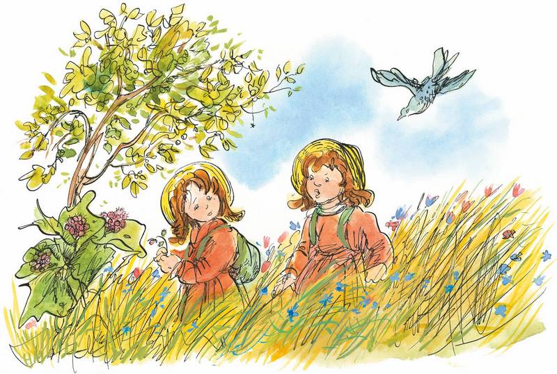 — Мина! Спускайся вниз с этой стороны! По-моему, там внизу растёт земляника со сливками! Бежим скорей!