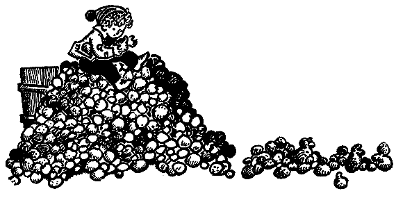 Мортену не нравилось, что дети работают так быстро. Смешные картофелины хватали у него прямо из-под носа. Но он заметил одну вещь: самые интересные картофелины были очень крупные. На мелкой и средней картошке не было почти никаких бугров. Она была гладкая и ровная. И Мортен успокоился: если ему не хватит смешных картофелин, он сможет найти их в ящике с крупной картошкой.
