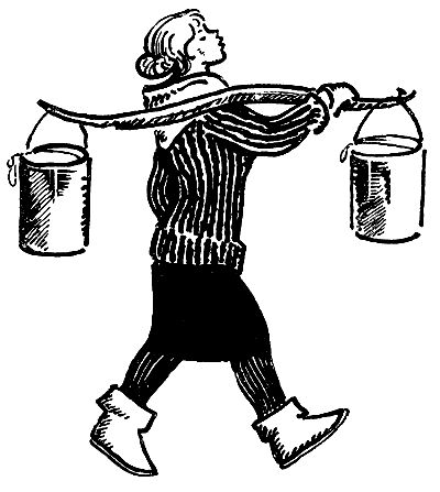 Мама весело размахивала вёдрами. Она подошла к колодцу и отперла тяжёлый замок. Потом она подняла крышку, привязала верёвку к дужке ведра и опустила его в колодец. Плюх! — сказало ведро. Мама подождала немного, а потом начала тянуть верёвку. Папа был прав, когда говорил, что это не так уж легко.