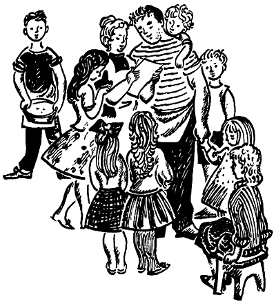 Представляете; как трудно одеть такую большую семью? Счастье ещё, что они могли друг за другом донашивать одежду: Марта после Марен, Мона после Марты, Милли после Моны, Мина после Милли, Мадс после Мартина, а Малышка Мортен носил всё после всех, но тогда все вещи были уже такие изношенные, что маме приходилось вырезать из них куски поцелее и из этих кусочков шить ему штаны.
