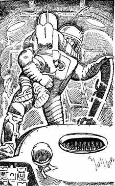 Спустя минуту или две я въехал в ворота. В шлюзе было полутемно. Выйдя из вездехода, я услышал маслянистое шипение, а затем чей-то голос: