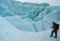 Одна из «ледниковых» забав – это спуск в расщелину голубого льда с последующим подъемом из нее с помощью альпенштока и втыкаемых в лед зубчатых металлических кошек. «Это просто», – коварно улыбнулся наш гид, забыв добавить: «после 3 лет практики». Увидев меня после того, как я каким-то чудом вылез из расщелины, фотограф ободряюще сказал: «Ну, может, камеру еще удастся починить…», дав мне таким образом в жизни некоторый шанс…