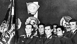 «Комсомольская организация части награждена переходящим Красным знаменем обкома ВЛКСМ».
