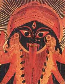 Среди всех индусских божеств самой жестокой, самой мстительной считалась богиня Кали. Это богиня смерти и разрушения, она несет главную ответственность за чуму, холеру, оспу и другие не менее страшные эпидемии. Традиционно ее изображают в виде обнаженной чернокожей женщины с четырьмя руками.
